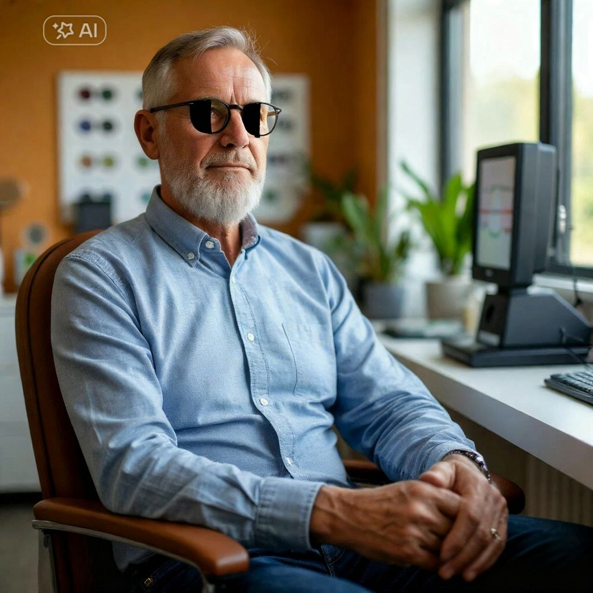 Проверяю зрение: с небольшой коррекцией в пробной оправе каждый глаз видит по 8 строк из 10. Учитывая катаракту - весьма неплохо и точно не хуже, чем год назад. В своих очках видит так же. Вблизи немного похуже, но для обычных бытовых задач достаточно.
