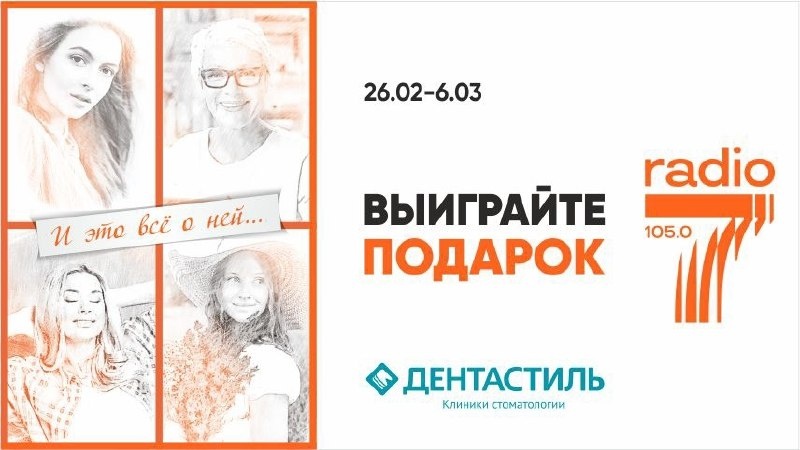 ». В эфире «Радио 7 на семи холмах» сотни песен, посвящённых женщинам. Ежедневно по будням с 27 февраля по 6 марта одна из них станет Песней дня и принесет победителю приз: премиальный дорожный набор для блестящей улыбки. Чтобы выиграть, слушателям нужно: ✔️Поймать в течении дня в эфире ролик, анонсирующий загаданную песню. ✔️С 16 до 17 часов дозвониться в эфир после специального сигнала по номеру 245-000 и назвать Песню дня.
