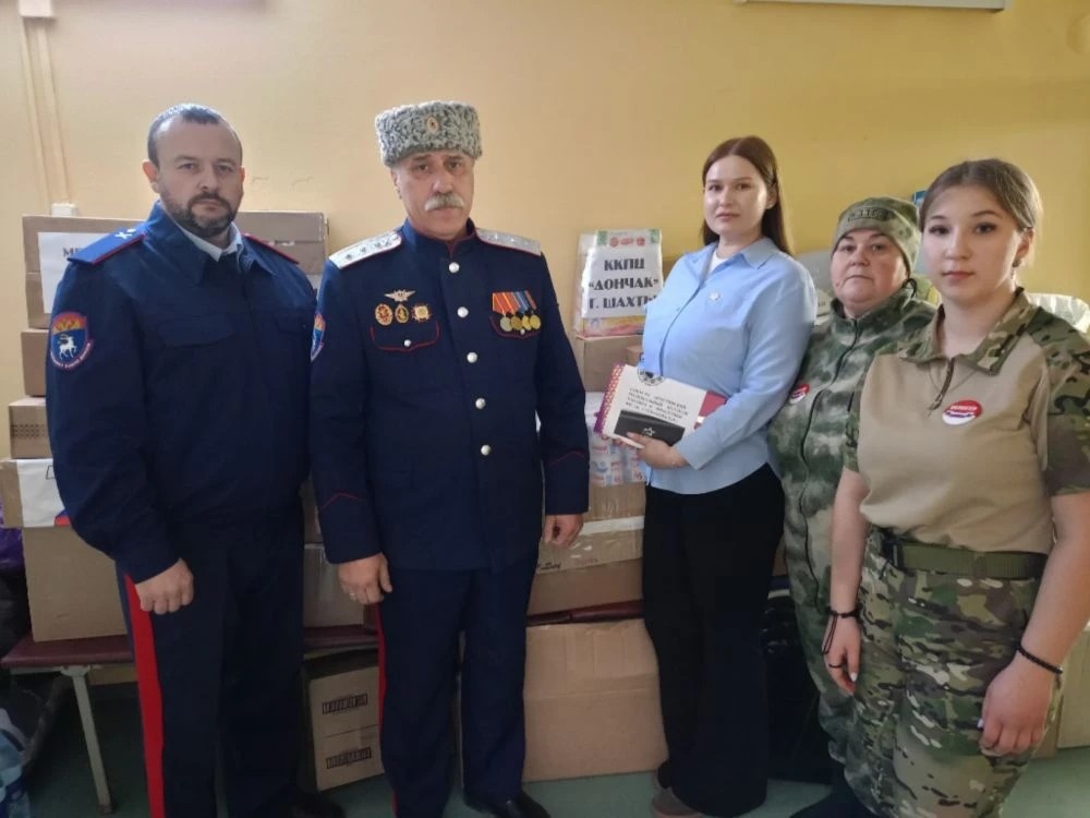 Первый заместитель атамана Шахтинского ГКО «Александровск-Грушевское» Роман Плеханов, руководитель Казачьего культурно-патриотического центра «Дончак» Светлана Плеханова, казак ШГКО Ярослав Рябич и волонтер, воспитанница центра Валерия Плеханова посетили госпиталь. Цель визита — поздравить бойцов с праздником и оказать поддержку в непростое время. – Мы привезли раненым бойцам СВО продукты, одежду, пеленки, бритвенные принадлежности, посуду, сладости, письма и открытки, – рассказали волонтеры. – Искренне благодарим всех, кто помог собрать гуманитарную помощь: