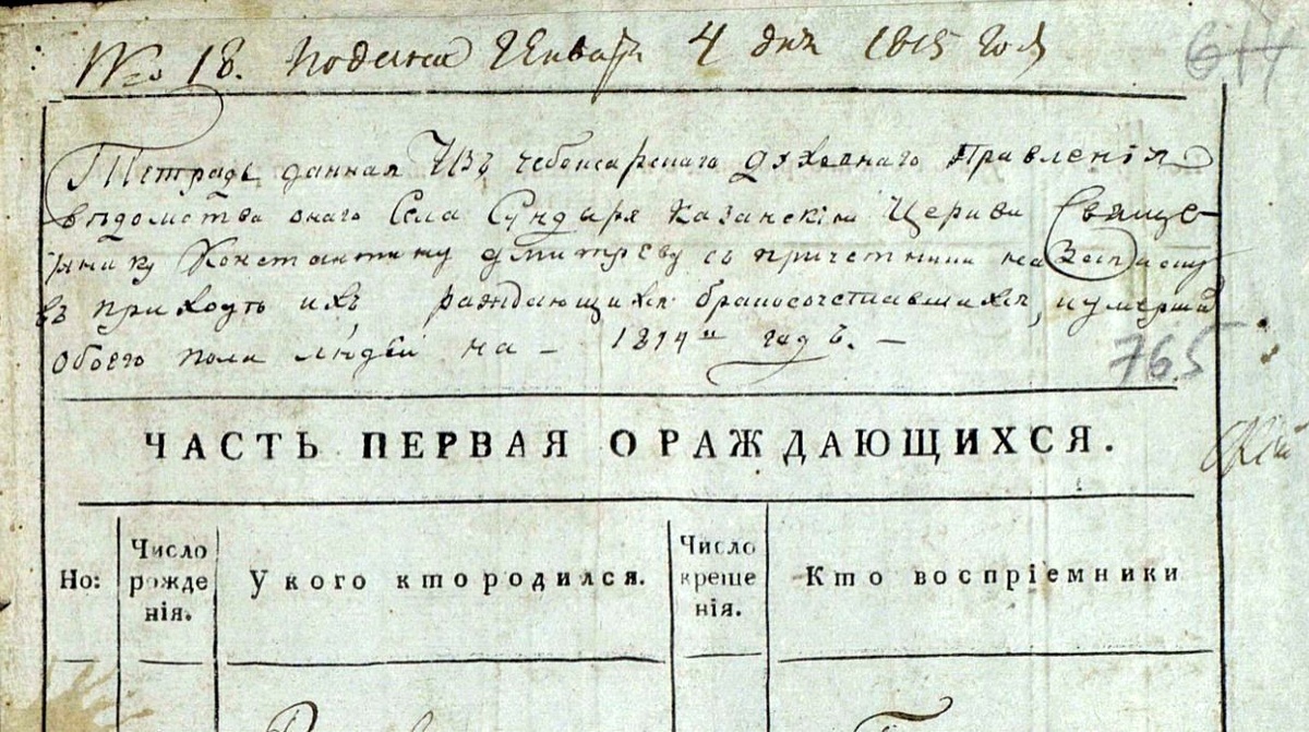 1814 год. Село Сундырь. Чебоксарский уезд. Афанасия Осиповна Бандина.