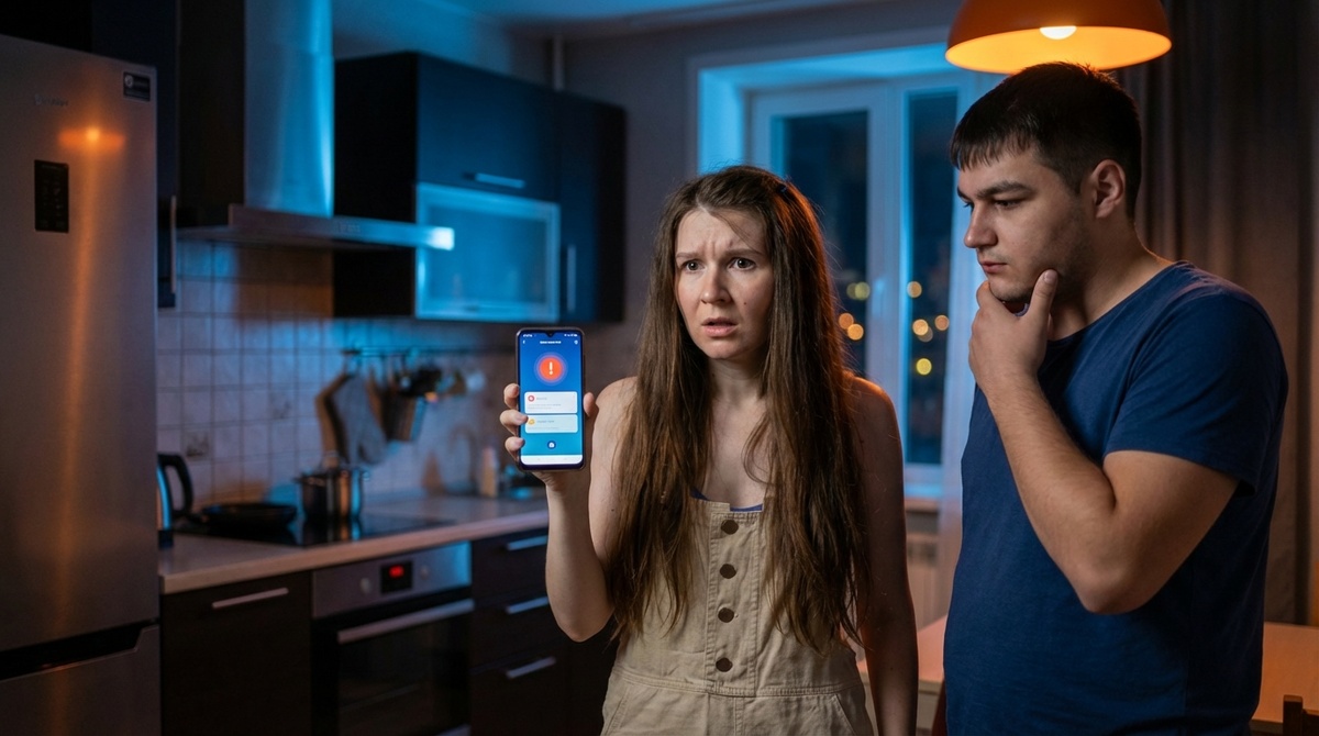 Пришло пуш-уведомление от приложения умного дома.
