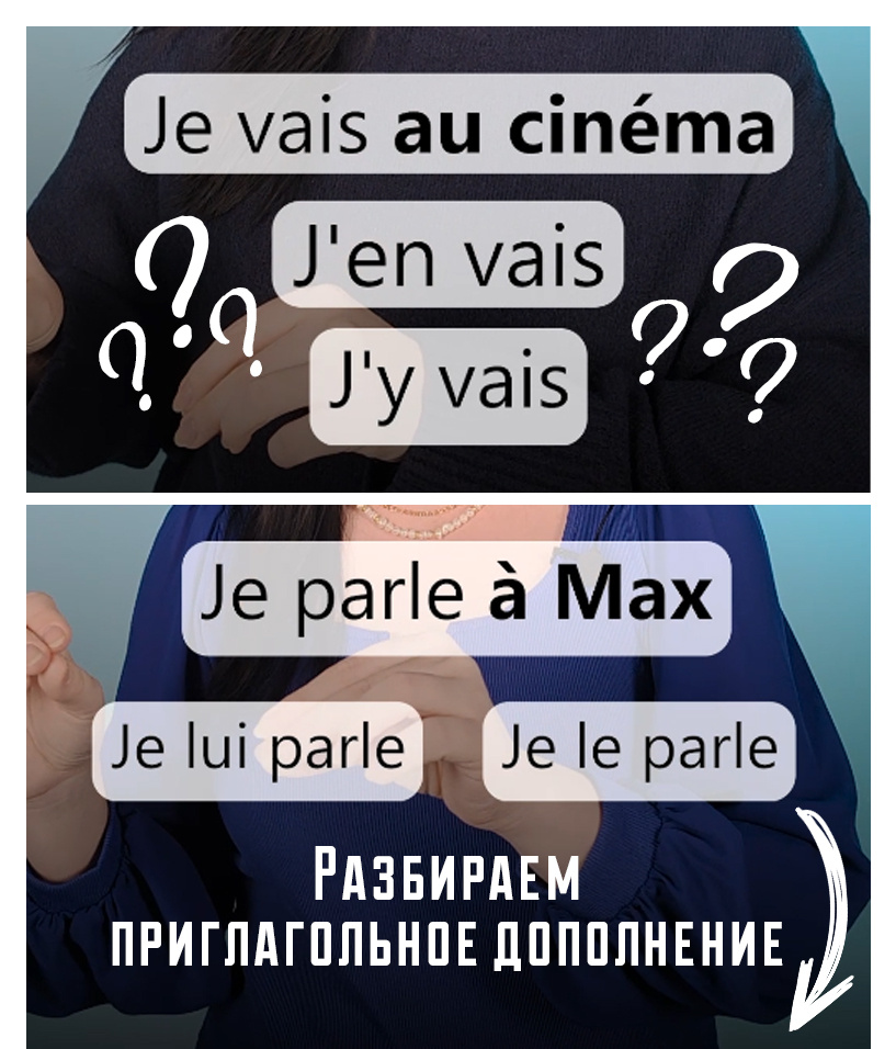 Разбираем тему косвенных дополнений во французском языке. Пример. Je vais au cinéma → J'y vais или J'en vais? ✅ J'y vais ❗️ Местоимение «Y» заменяет: • Предлог «à» + неодушевлённое существительное (место, предмет) • Обстоятельства места (туда, там) Разбираем предложение: Je vais au cinéma → Je vais à + le cinéma 👉Au cinéma = предлог à + место (cinéma) В таких случаях используем Y ❗️ Местоимение «EN» заменяет: • Предлог «de» + существительное • Частичный артикль (du, de la, des) + существительное • Количество Примеры для EN: Если первый случай используется с неодушевленными существительными, то в случае с одушевленными мы будем использовать косвенное дополнение LUI. Пример: Je parle à Max → Je lui parle 📌 Почему «lui», а не «le»? ❗️Местоимение «LUI» заменяет: • Одушевлённое дополнение с предлогом «à» (кому? — косвенное дополнение) Je parle à Max → действие направлено к кому-то (косвенное дополнение) Parler à quelqu'un — глагол, требующий предлога à Для замены одушевлённого косвенного