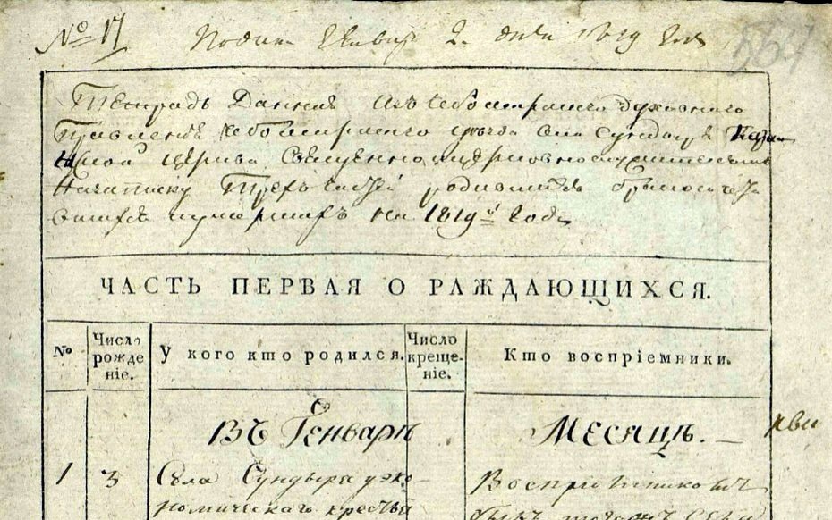 Метрические книги о рождении, браке и смерти. ГИА Чувашской Республики (ГИА ЧР), фонд № 225, опись № 3, дело № 86, стр. 1045 скан. Тетрадь, данная из Чебоксарского духовного Правления Чебоксарского уезда села Сундыря Казанской церкви священноцерковнослужителям на записку трех частей родившихся, бракосочетавшихся и умерших на 1818 год. Часть первая. О раждающихся. Стр. 1058 скан. Октябрь. № 54. 4 число рождения. Села Сундыря экономического крестьянина Осипа Михайлова сын Иван молитвован а крещен 5 числа. Восприемники: Деревни Моляковой экономического крестьянина Елисея Максимова сын Михаил. Молитвовал и крестил священник Тимофей Ходяшев. При крещени были Диакон Тимофей Киаксиров. Дьячек Михаил Парисов. В должности пономаря Даниил Иванов. https://yandex.ru/archive/catalog/bb475a43-c29b-457a-a30e-f6f65e7438e2/1058