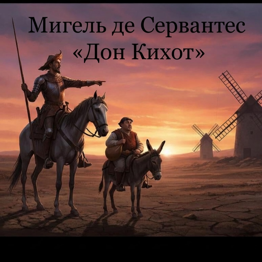 ВСЕ КНИГИ МИРА ЗА МИНУТУ Мигель де Сервантес — «Дон Кихот» Суть в одной фразе: История о безумном и благородном дворянине, который начитался рыцарских романов и отправился спасать мир в эпоху, где рыцарям больше нет места. Герои: * Дон Кихот: Худой идеалист на старой кляче Росинанте, видящий в мельницах великанов, а в постоялых дворах — замки. * Санчо Панса: Рассудительный и приземленный крестьянин на осле, который следует за хозяином ради обещанного острова. * Дульсинея Тобосская: Простая крестьянка, которую воображение героя превратило в прекрасную даму сердца. Сюжетный драйв: * Подвиги: Дон Кихот совершает серию абсурдных «подвигов», получая тумаки от тех, кого пытается спасти. Он сражается с ветряными мельницами и стадами овец. * Диалог: Весь роман — это спор между мечтой (Кихот) и реальностью (Санчо). Постепенно они меняют друг друга: Санчо становится мудрее, а рыцарь — человечнее. * Финал: Потерпев поражение в честном бою, Дон Кихот возвращается домой. Перед смертью к нему возвра