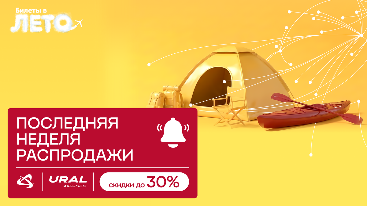 Время действовать: осталась последняя неделя нашей распродажи «Билеты в лето»! И да, мы знаем, что для настоящего путешественника важна не только цена, но и свобода выбора — поэтому держите наши лучшие варианты: 🌄 Екатеринбург (на Конжак) — из/через Москву, Сочи, Краснодар (а ещё из Калининграда!) 🌄 Иркутск (на Ольхон) — рейсы из/через Москву, Санкт-Петербург и Екатеринбург. 🌄 Владикавказ (на Дигорию) — из/через Москву. 🌄 Барнаул (на Белуху) — из/через Москву и Сочи. 🌄 Краснодар (на Лаго-Наки) — из/через Москвы, Екатеринбурга и Челябинска. Если руки уже тянутся паковать рюкзаки и готовиться к путешествию, напомним вам условия распродажи. ☑️ Скидки до 30% от тарифной части стоимости билета. ☑️ Дополнительно — ещё 50% скидки на билеты по России для детей до 11 лет. ☑️ Бонусы программы лояльности «Крылья» с повышенным сроком действия. Период продаж — до 1 марта 2026 года. Период вылетов — с 16 февраля по 24 октября 2026 года. Участвуют как прямые, так и трансферные рейсы; как по Росс