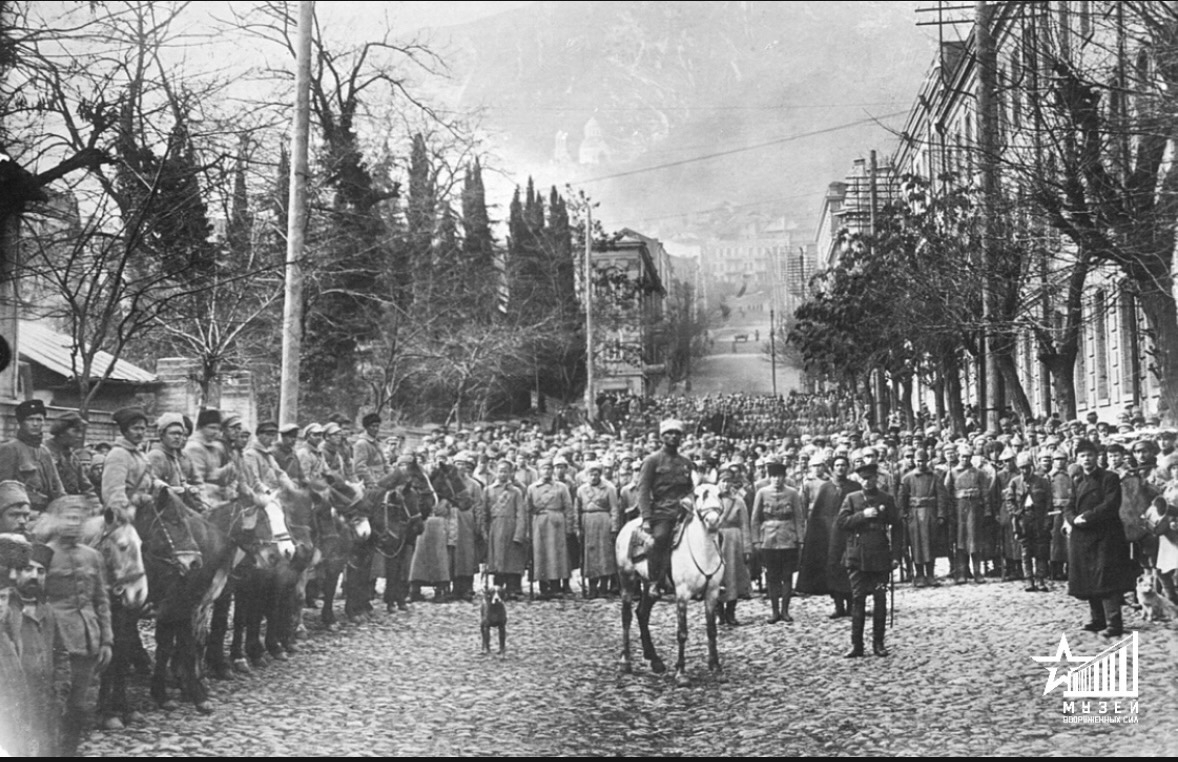 12 февраля 1921 года грузинские коммунисты, которые действовали по приказу Кавказского бюро ЦК РКП (б), подняли восстание. Образовавшийся 15 февраля Революционный комитет Грузии обратился к Владимиру Ильичу с просьбой о вооруженной помощи. Советское правительство отдало приказ войскам Кавказского фронта (командующий — бывший полковник Русской императорской армии Владимир Михайлович Гиттис) выступить на поддержку повстанцев. 16 февраля наши войска перешли в наступление и вступили на территорию Грузии. Главный удар из пограничных районов Азербайджанской и Армянской ССР на Тифлис наносила 11-я армия. Она насчитывала 40 200 штыков и сабель, 1065 пулеметов, 196 орудий, 7 бронепоездов, 8 танков и бронеавтомобилей, 50 самолетов (командующий — бывший штабс-ротмистр царской армии Анатолий Ильич Геккер).