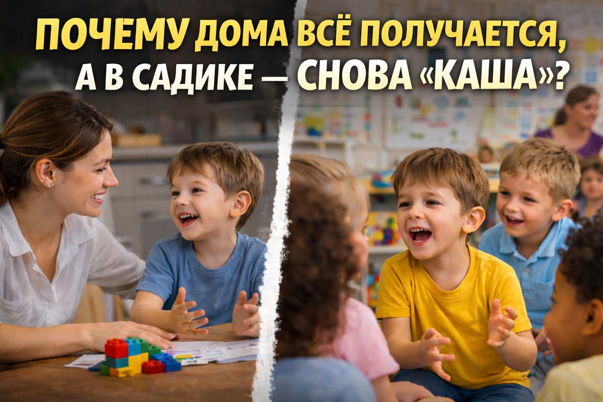 Почему дома всё получается, а в садике — снова «каша»? «Дома он говорит чисто. С логопедом — вообще отлично. А в садике воспитатель говорит, что снова всё смазано…» И у родителей внутри — раздражение, тревога и мысль: «Мы что, зря занимаемся?» Нет. Не зря. Просто речь дома и речь в садике — это две разные ситуации для мозга. 🧠 1. Дома — контролируемая речь