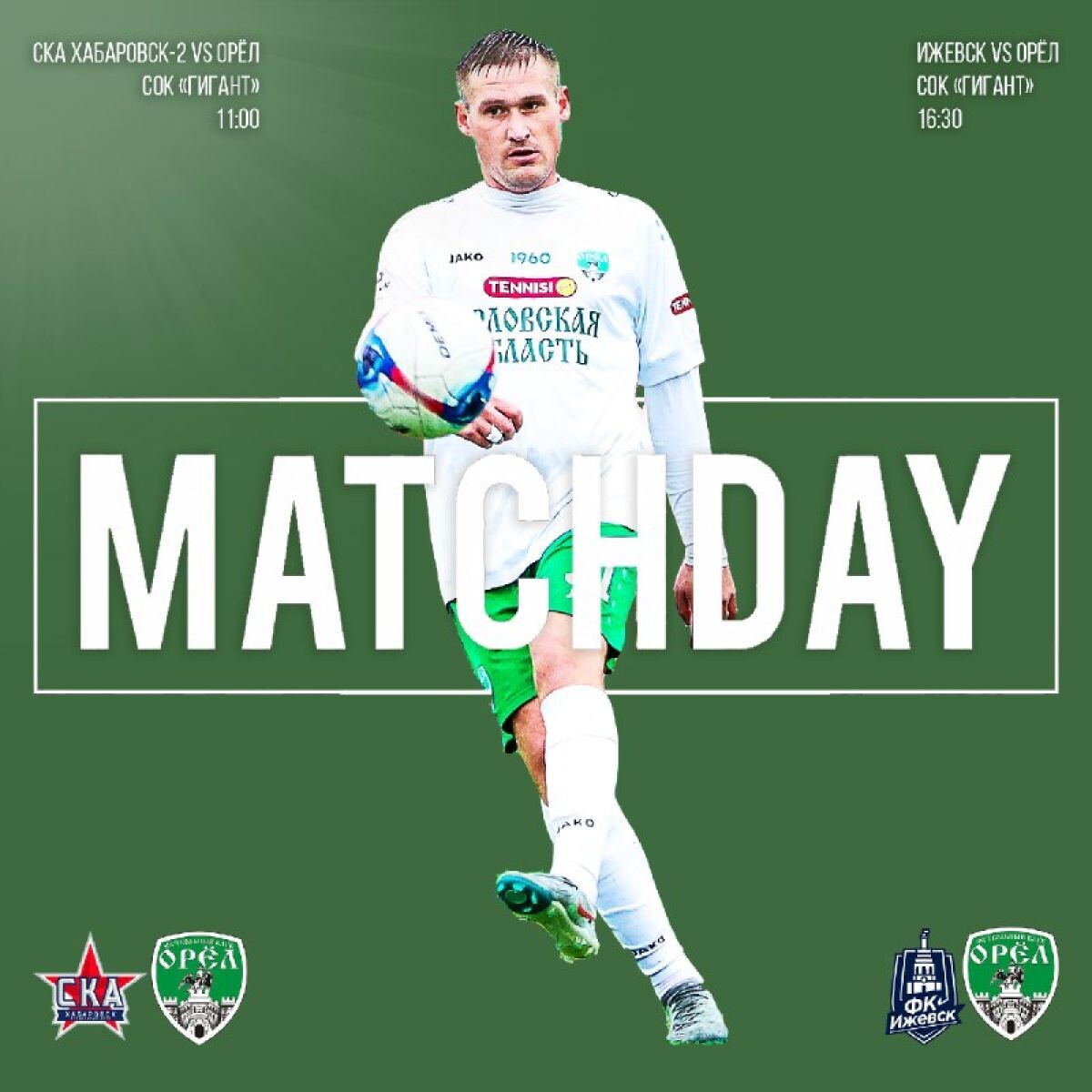 Сегодня, 24 февраля, ФК "Орел" проведет две товарищеские игры. Это произойдет на предсезонном сборе в Крымске. В 11.00 начнется игра с "СКА-Хабаровск-2", а в 16.30 - с "Ижевском". Матчи будут сыграны разными составами, а онлайн-трансляций не запланировано. Ранее орловцы провели две встречи. Играя основными составами, они обыгрывали со счетом 2:1 "Кубань-д" и "Севастополь". Но после массовых замен исход обеих встреч менялся - 2:2 и 3:6.