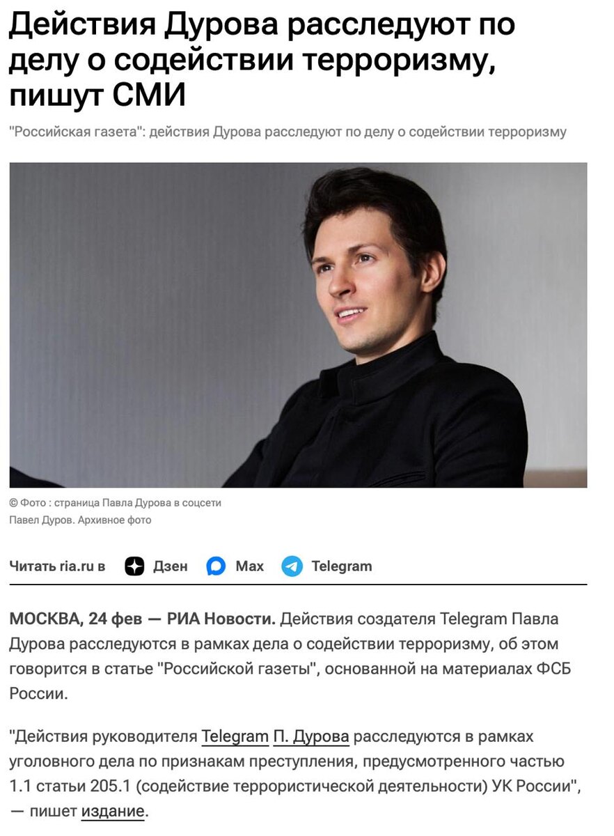 Павел Дуров проходит по делу содействию терроризму👀