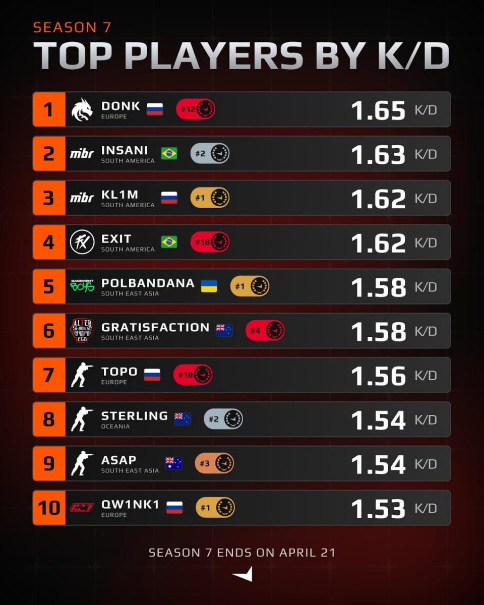 За 7 сезон у него самый высокий показатель K/D — 1.65 💥