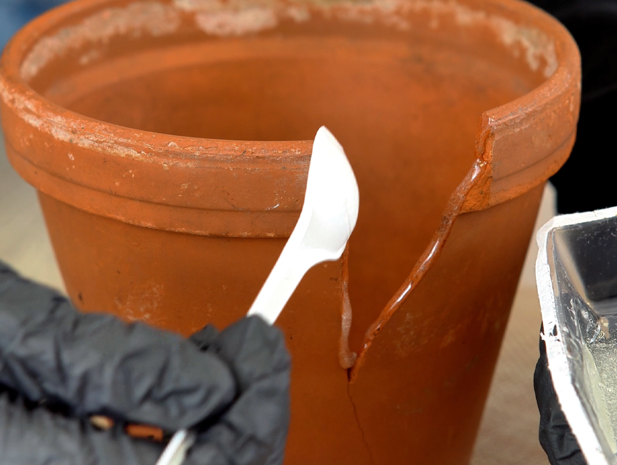 «Эпоксидка» — «химия для профессионалов»? Нет, один из самых надежных способов восстановления вещей в быту. Разбираемся, что такое двухкомпонентный клей, где его можно (и нельзя) применять, и как работать без нервов. На фото кадр из видео с восстановлением глиняного цветочного горшка. Посмотреть видео можно здесь. Двухкомпонентный состав из эпоксидной смолы и отвердителя. Представьте себе конструктор. У вас есть две детали: смола и отвердитель. По отдельности они могут храниться вечно, но при смешивании вступают в реакцию. Добавки в составе делают его «всеядным»: он приклеит всё что угодно к чему угодно — от разбитой стеклянной полочки до отвалившейся металлической ручки. В результате получается шов, которому не страшны ни холод, ни жара, ни вода. В маленьких тюбиках — обычно для дома и творчества. В больших объемах состав используют на производствах: им укрепляют детали, ремонтируют оборудование. До отверждения состав очень жидкий. Схватывается быстро. Склеиваемые детали и сам сост