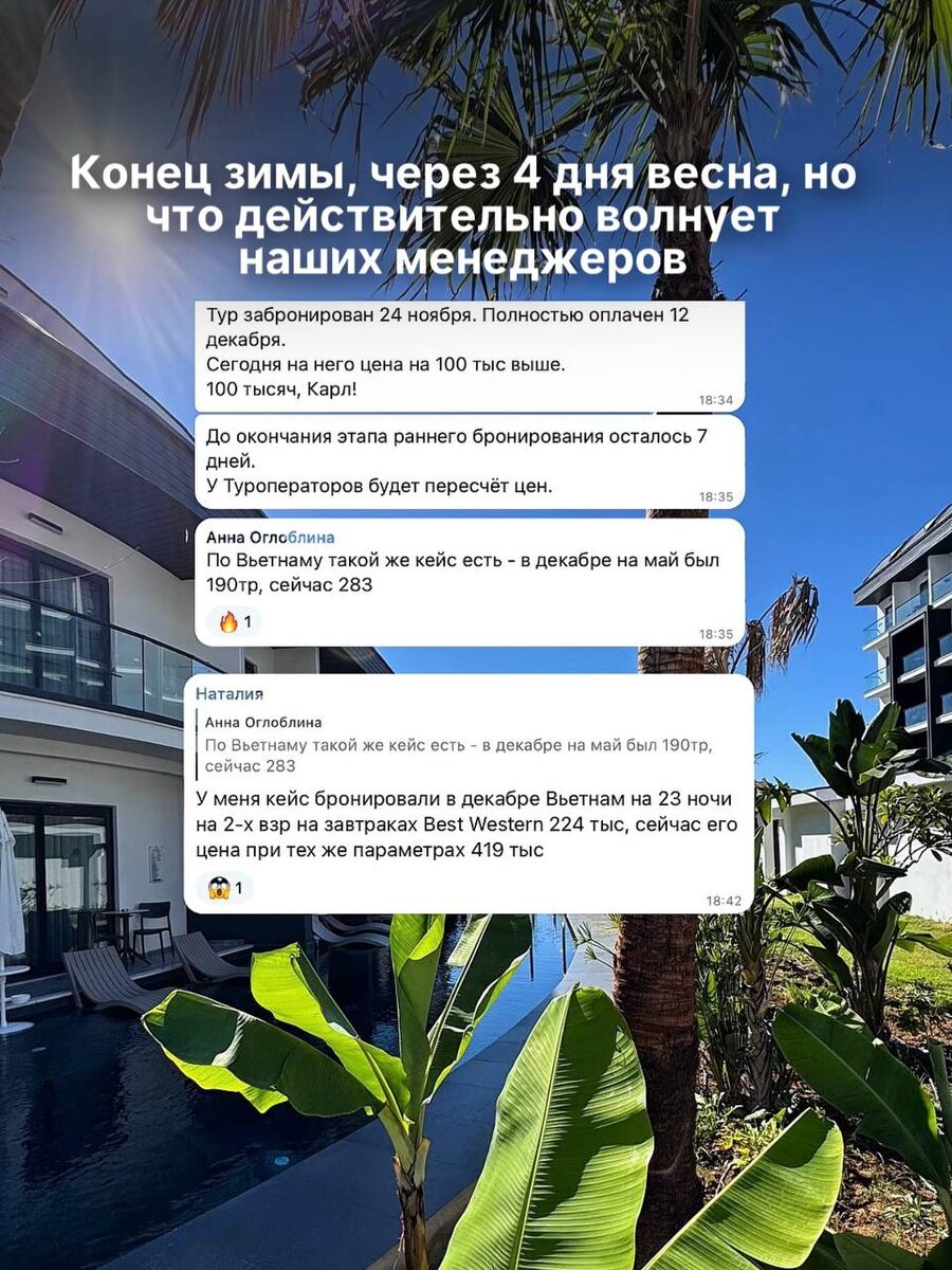 🏝️ Мы всю неделю радуемся за туристов — они уже забрали лето по классным ценам. Пока кто-то думает «ещё рано», другие фиксируют стоимость, выбирают лучшие отели и спокойно ждут отпуск. Турция, Египет, Вьетнам, Россия и др. — лето активно разбирают. У вас ещё есть шанс сэкономить.👇 ✈️ ИЗ ОМСКА 🇹🇷 Турция с всё включено 24.06 (6 ночей) 150 378 руб на двоих 13.07 (6 ночей) 142 993 руб на двоих 19.08 (6 ночей) 154 830 руб на двоих 🇪🇬 Египет с всё включено 16.06 (10 ночей) 178 075 руб на двоих 08.07 (10 ночей) 180 668 руб на двоих 21.08 (10 ночей) 179 394 руб на двоих 🇻🇳 Вьетнам с завтраками 18.06 (11 ночей) 179 471 руб на двоих 24.07 (11 ночей) 187 001 руб на двоих 05.08 (11 ночей) 179 885 руб на двоих 🇦🇧 Абхазия с завтраками 17.06 (6 ночей) 91 378 руб на двоих 27.07 (6 ночей) 100 304 руб на двоих 17.08 (6 ночей) 106 651 руб на двоих ✈️ ИЗ НОВОСИБИРСКА 🇹🇷 Турция с всё включено 17.06 (6 ночей) 151 392 руб на двоих 15.07 (6 ночей) 151 088 руб на двоих 03.08 (6 ночей) 159 4