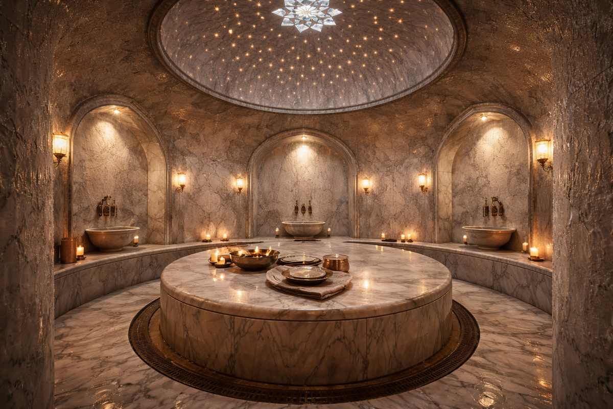 Тематическое разделение. Каждый зал имеет свой характер — не просто разные комнаты в одном коридоре, а разные миры. В русской бане запах берёзовых веников, в хамаме — мраморные залы с паром, в финской сауне — сухое жаркое дыхание печи.