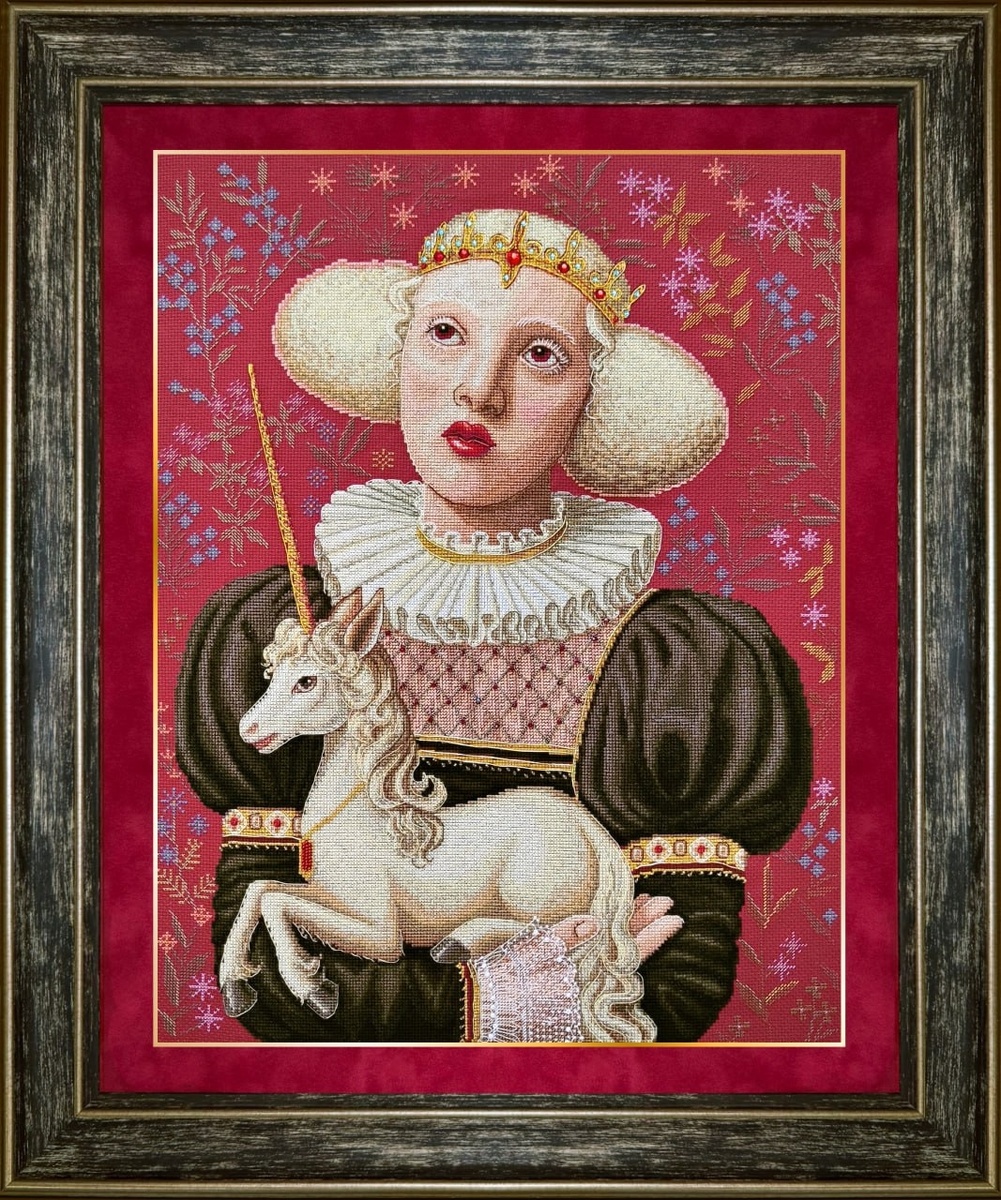 Всем большой вышивальный привет! Несколько месяцев назад фирма "Золотые ручки" выпустила новинку "Дева с единорогом". Мало того, что новинка некоторым в принципе показалась страшна странна сюжетом, так еще вокруг неё разгорелся скандал - оказалось, что исходник принадлежит художнице, у которой фирма не испросила разрешения ее картину использовать. Я писала об этом в этой статье Очередные скандалы в вышивальном сообществе-страсти кипят нешуточные И вот рембрендинг! "Макдональдс" и "Вкусно и точка", "Леруа Мерлен" и "Лемана Про", "Lego" и "Мир кубиков" и теперь вот "Дева с единорогом". Она не изменила название, но изменила вид. Теперь набор выглядит так. Стала богаче отделка рукавов, ткань на платье сверху, в целом и единорог и лицо дамы стало белее, ну и, конечно, зеркальное отображение.. Вот для сравнения - первая картина - было, вторая - стало. Набор опять вызвал много споров - кто-то пишет, что в старом наборе дева с более интеллектуальным выражением лица, кто-то считает, что дама