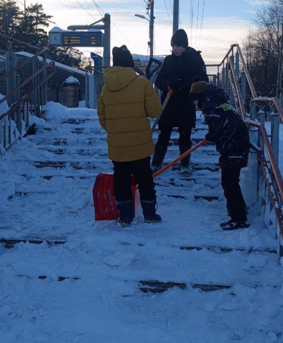 На пешеходный мостах, которые должно обслуживать РЖД, жители сами начали чистить от снега ступеньки. К делу подключается молодёжь.