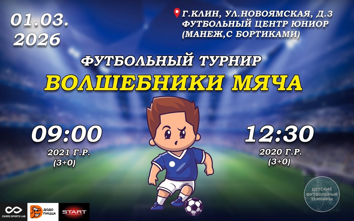» 🗓 1 МАРТА 2021г.р (3+0) до 6 человек в составе 2020г.р (3+0) до 6 человек в составе 🏟1 игровое поле (18м*12м ), ворота 1,5м*1,5м (манеж, искусственный газон,с бортиками) ⏱️Игра - 10-12 минут 🎯Место проведения: г. Клин, ул. Новоямская, 3 🏅Участвует 5-6 команд, одна группа в круг ✔️ 4-5 игр у каждой команды ⭐️Индивидуальные награды лучшим игрокам команды и лучшим игрокам турнира 🥇🥈🥉Всем футболистам медаль за участие 🏆 Победитель и призеры получают Кубок 🎁 Бонусы от наших партнеров 📊 Онлайн таблицы 📸 Профессиональный фотограф 🎵 Музыкальное сопровождение Подробная информация по телефону:+7(967)217-68-59 Артëм -— #ФутбольныйТурнирМарт2026 #ФутбольныйТурнирМосковскаяОбласть2026 #ФутбольныйТурнирКлин2026 #ФутбольныйТурнирМосковскаяОбласть2020гр #ФутбольныйТурнирМосковскаяОбласть2021гр Источник: https://vk.com/wall-178222694_2650