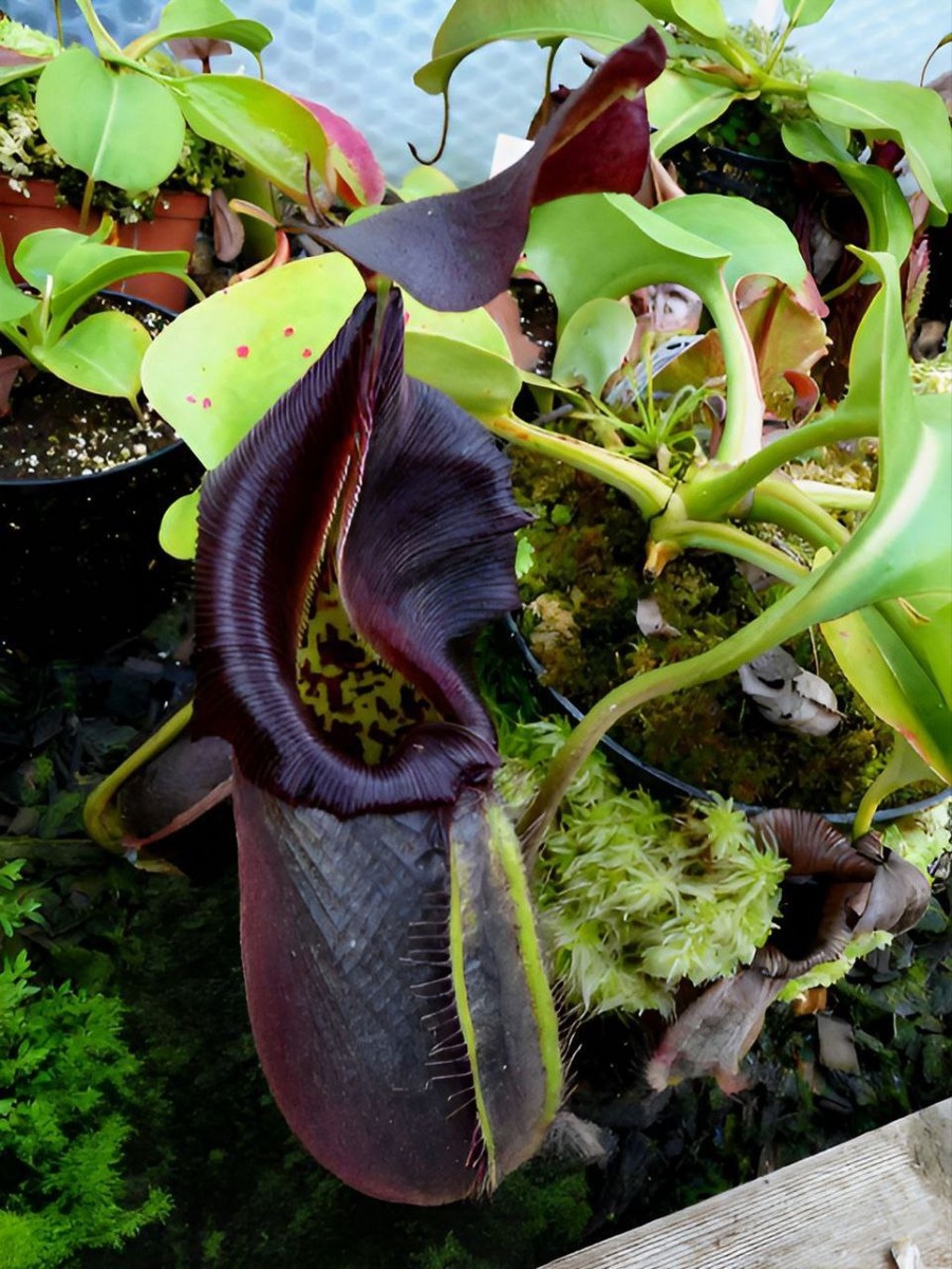 🖤 Сравнительно новый вид непентеса с массивными тёмными кувшинами. Ловушки имеют тёмно‑красно‑коричневый, почти чёрный цвет. Перистом также тёмный, с бледно‑зелёной внутренней кромкой. Внутренняя поверхность кувшина ярко‑зелёная с пурпурными пятнами. Произрастает на острове Минданао (Филиппины), в горных районах на высотах около 1000 м. Растёт и как эпифит (на деревьях) и наземно в мшистых горных лесах с высокой влажностью воздуха (70–90 %) и умеренными температурами. Вид назван в честь Роба Кэнтли — известного коллекционера непентесов, который сыграл ключевую роль в обнаружении, культивировании и популяризации этого вида. Впервые N. Robcantleyi официально описан в 2011 году. Изначально предполагалось, что Robcantleyi может быть гибридом N. truncata и N. nebularum, но позже он был признан самостоятельным видом. В нашем питомнике вы можете приобрести гибриды этого вида: • Hamata * robcantleyi • Klossii * robcantleyi • Robcantleyi * zakriana • Robcantleyi * veitchii • Talangensis *