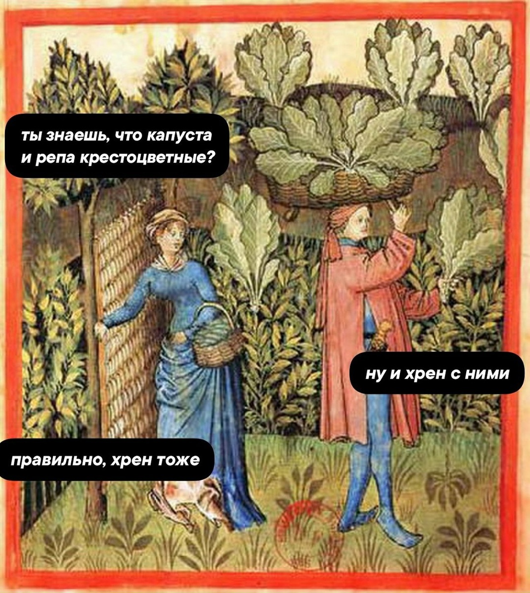 Вчера листала ленту и попался мне этот мем. Я вначале посмеялась от души, но потом задумалась: ведь в этой шутке вся суть современного отношения к травам зарыта! — Ну и хрен с ними, подумаешь, какая-то капуста. А ведь за этим хреном и капустой — целая вселенная, которую мы стремительно забываем. Знаешь, что меня больше всего задевает в мире травничества и фольклора сейчас? Это потеря сакральности обыденного. Люди превратили магию в товар: "Купи заговор на три рубля... или приворот по акции". Мы забываем, что волшебство всегда было встроено в быт. Оно всегда жило рядом с человеком — в печи, в поле, на грядке. ❤️ Вот, казалось бы, капуста. Ну что в ней магического? Вило́к да вило́к (кочан, то бишь). Но в старо-славянской традиции капуста — это символ плодородия, женской силы, достатка и крепкой, как хруст кочана, энергии жизни! ✅ Капусту клали в колыбель к слабым младенцам. Верили, что она передаст им свою силу, и ребенок нальется здоровьем, как кочан соком. ✅ Девушкам перед свадьбо