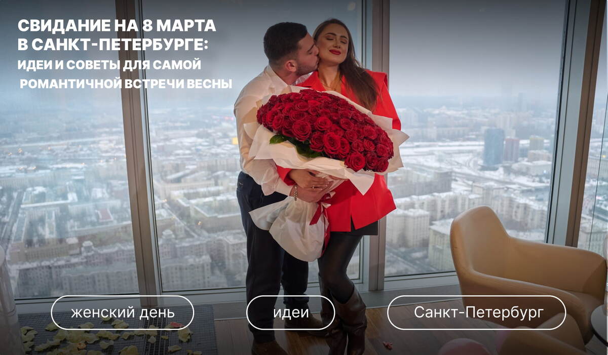 8 марта — день, который ждут не только женщины, но и все, кто хочет сделать своих любимых чуточку счастливее. В этот весенний праздник хочется сказки, нежности, ярких эмоций и, конечно, романтики. Особенно, если вы живёте или планируете отметить этот день в Санкт-Петербурге — городе, где сама атмосфера пропитана вдохновением и любовью. Здесь умеют ценить утончённые жесты, нежные слова и красивые традиции: влюблённые пары фотографируются у разводных мостов, гуляют под дождём по набережным, встречают рассвет в уютных кафе, загадывают желания в садах и парках. Но как сделать этот день по-настоящему особенным? Простого букета уже недостаточно, а обед в ресторане стал обыденностью. 8 марта — идеальный повод порадовать свою вторую половинку необычным свиданием, удивить её заботой, вниманием к деталям, оригинальностью. Даже если вы вместе не первый год, именно этот праздник даёт шанс заново влюбиться друг в друга, вспомнить всё хорошее и создать новые воспоминания. Для современных пар этот д