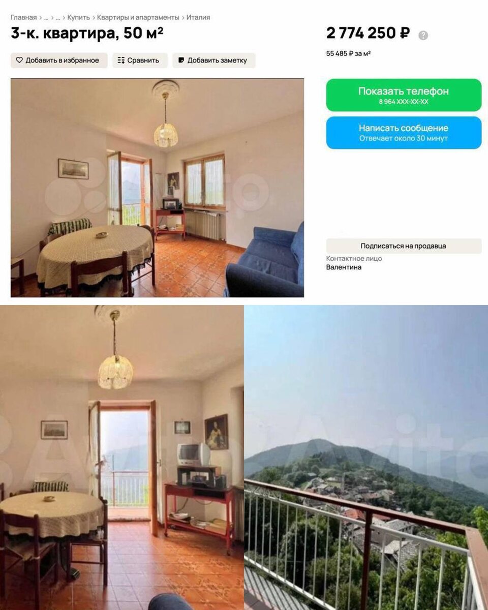 В Telegram нашлась трешка в Италии по цене однушки в Ленобласти – квартира стоит всего 2,7 млн рублей.