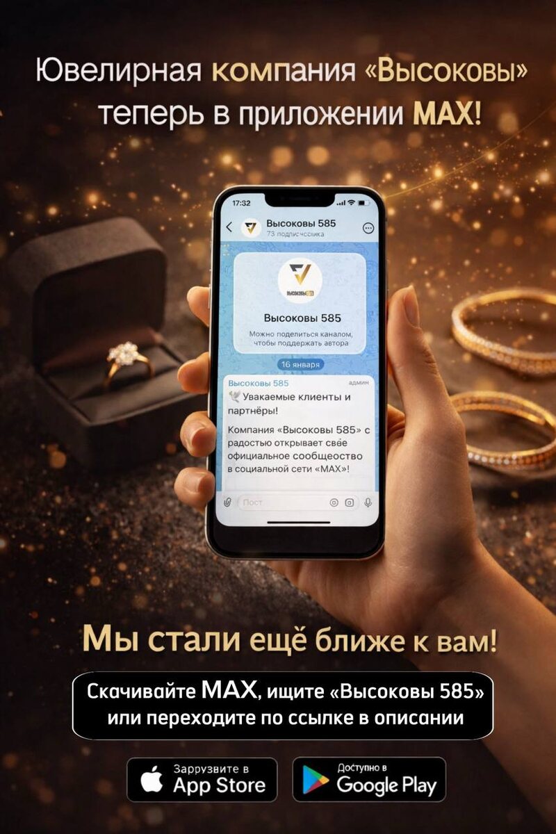! Компания «Высоковы 585» с радостью открывает своё официальное сообщество в социальной сети «MAX»! Наша миссия — создавать ювелирные изделия высочайшего качества, которые сочетают в себе эстетическое совершенство и глубокую духовную составляющую. Мы работаем с серебром 925 пробы, предлагая широкий ассортимент: от элегантных колец и серёг до канонических православных крестов и автомобильных икон. 📍В этом аккаунте мы будем: • Знакомить вас с новинками и коллекциями. • Делиться эксклюзивным контентом о процессе создания. • Информировать об акциях и событиях. • Общаться с вами, отвечая на вопросы и принимая обратную связь. Благодарим, что вы с нами. Давайте поддерживать связь здесь: https://max.ru/id440121617355_biz