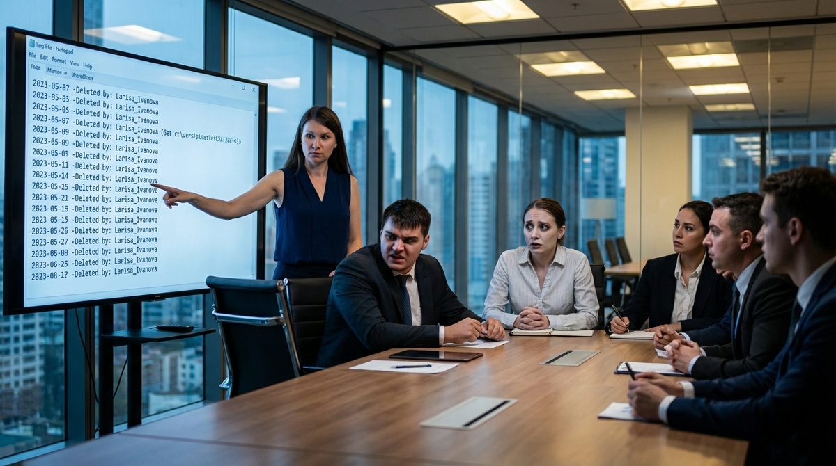 — Дело в том, Иван Петрович, что когда я пришла на работу в 8:50, папка с моим итоговым отчетом на общем диске была пуста. Файл был удален.