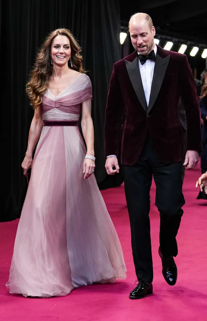 Принц и принцесса Уэльские, как обычно, пришли вместе. Кейт Миддлтон снова показала, что королевский дресс-код вполне дружит с осознанным потреблением: вместо нового платья она выбрала уже знакомый розово-малиновый наряд Gucci, в котором появлялась раньше (с 2019 года).