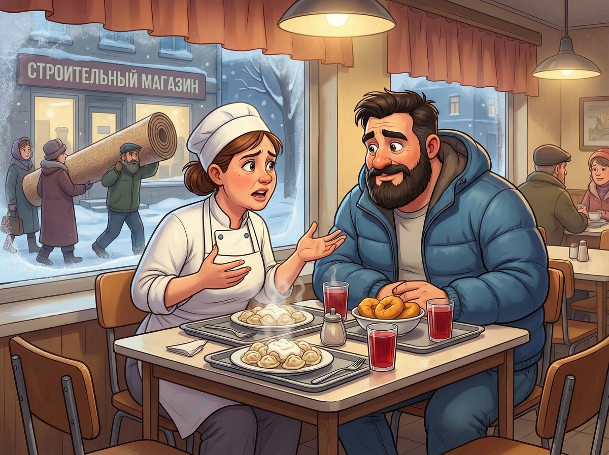 Магазин я любил: рядом была столовая «Патриот». Там было просто: звон вилок, гул голосов, запах бульона и теста. И самое главное — там кормили так, что после первой ложки становилось легче жить.