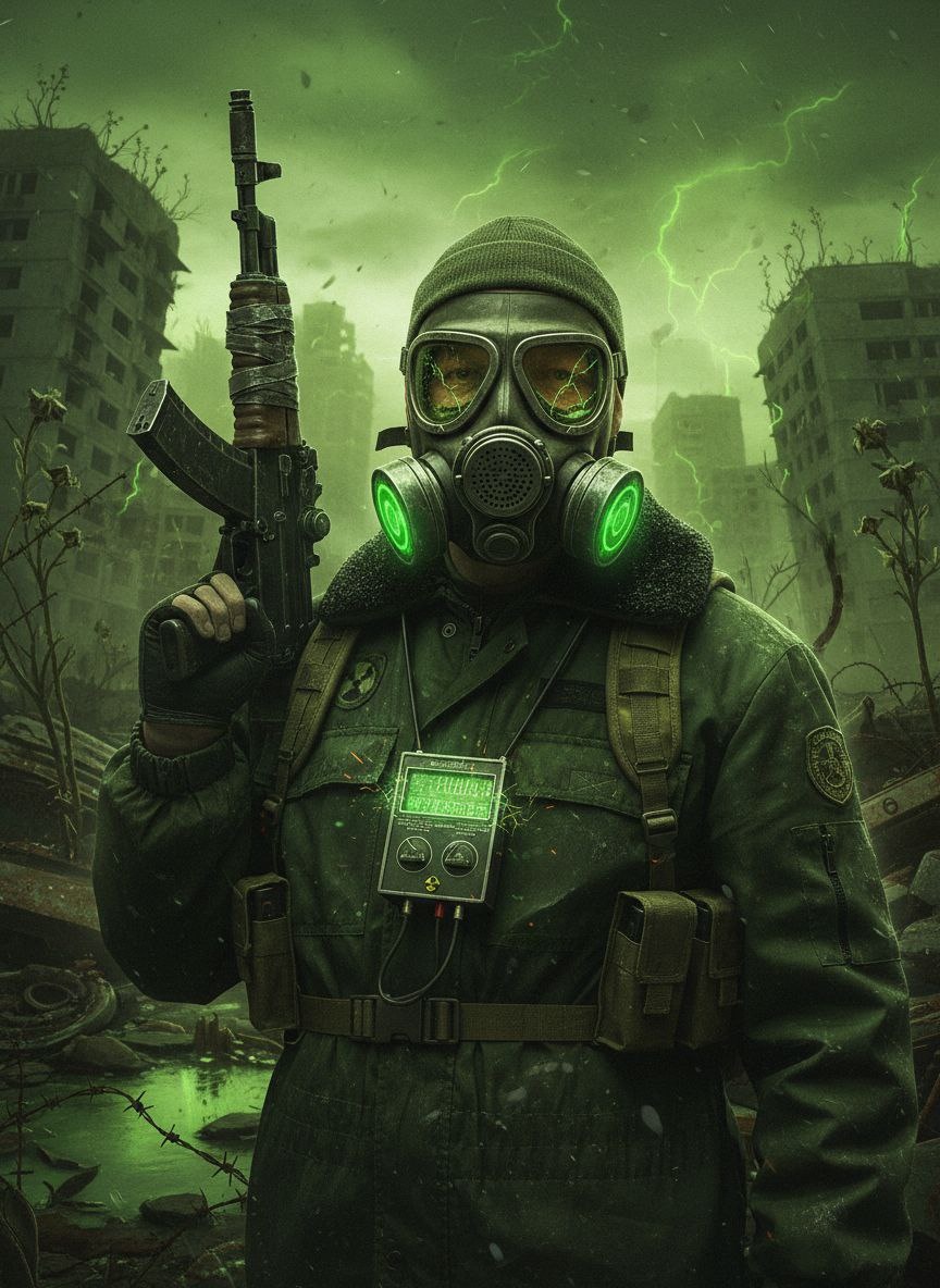 Постапокалипсис. Так увидела нейросеть Странника идущего по зоне отчуждения.