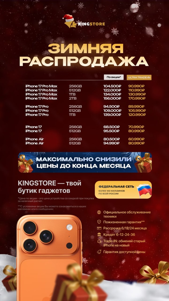 🔥 ДОБАВИЛИ НОВЫЕ МАКБУКИ И АЙПАДЫ ОБНОВИЛИ ПРАЙСЫ НА АЙФОНЫ ПАМЯТЬ И ВЕРСИЯ На нашем сайте вы можете посмотреть актуальные цены на все версии и все цвета👇🏼 https://samara.kingstore.link/catalog/iphone/iphone-17-pro-max/ На нем все актуально! Ультра Trade-In — это быстрый и удобный способ обменять старый телефон на новый со скидкой. Вы приносите устройство➡️ Мы его оцениваем на месте➡️ И Вы моментально получаете скидку или деньги ✅Минимум ожидания — максимум выгоды