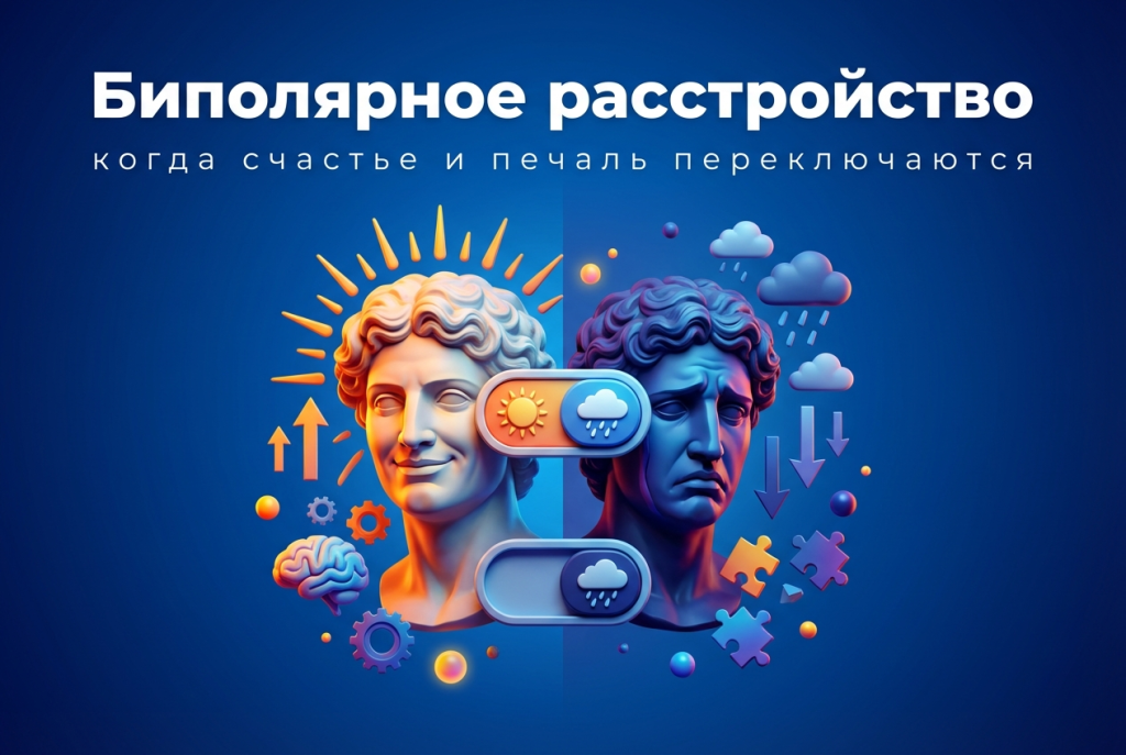 Представьте человека, который в понедельник готов свернуть горы: он не спит, строит грандиозные планы, смеется громче обычного и чувствует себя буквально избранным. А в четверг того же человека не вытащить из постели — он плачет без причины, не видит смысла ни в чем и ощущает себя пустым сосудом. Это не перепады настроения от усталости. Это биполярное аффективное расстройство, и оно затрагивает около 2-3% населения планеты. Многие годами живут с этим диагнозом, не подозревая о нем. Списывают подъемы на вдохновение, а спады — на лень или слабый характер. Между тем мозг в этот момент работает как электрическая сеть с неисправным предохранителем: то перегружается сверх меры, то почти отключается. Биполярное расстройство — это не про характер и не про силу воли. В основе лежит нарушение баланса нейромедиаторов: дофамина, серотонина и норадреналина. Во время маниакальной фразы их уровень резко возрастает, как будто кто-то выкрутил регулятор громкости на максимум. Во время депрессивной — пад