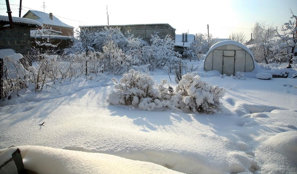 Снег в саду — не просто «зимний декор». Это естественная защита почвы и корней.