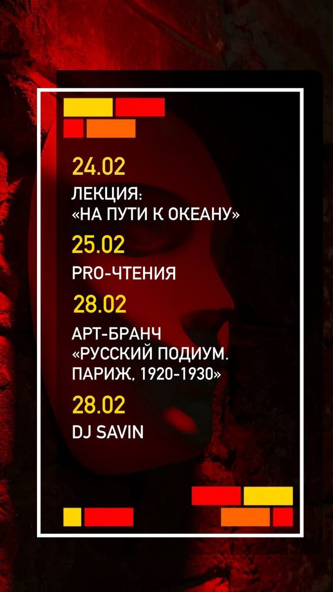 " ✔ #24_февраля — лекция «На пути к океану», 19:00, участие 1500 ₽ +79141629582 ✔ #25_февраля — музыкально-литературный проект «Pro-чтения», 19:30, 700–1500 ₽ +79243084688 ✔ #28_февраля — арт-бранч «Русский подиум. Париж, 1920–1930», 12:00–13:30, 2600 ₽ Билеты ✔ #28_февраля — DJ Savin, 21:30, вход свободный 8-914-173-48-33 📅 Когда: #24_февраля–#28_февраля ⛳ Где: бар "Забрели" 💳 Стоимость: 0–2600 ₽ 👉 Афиша Хабаровска. Куда сходить, экскурсии