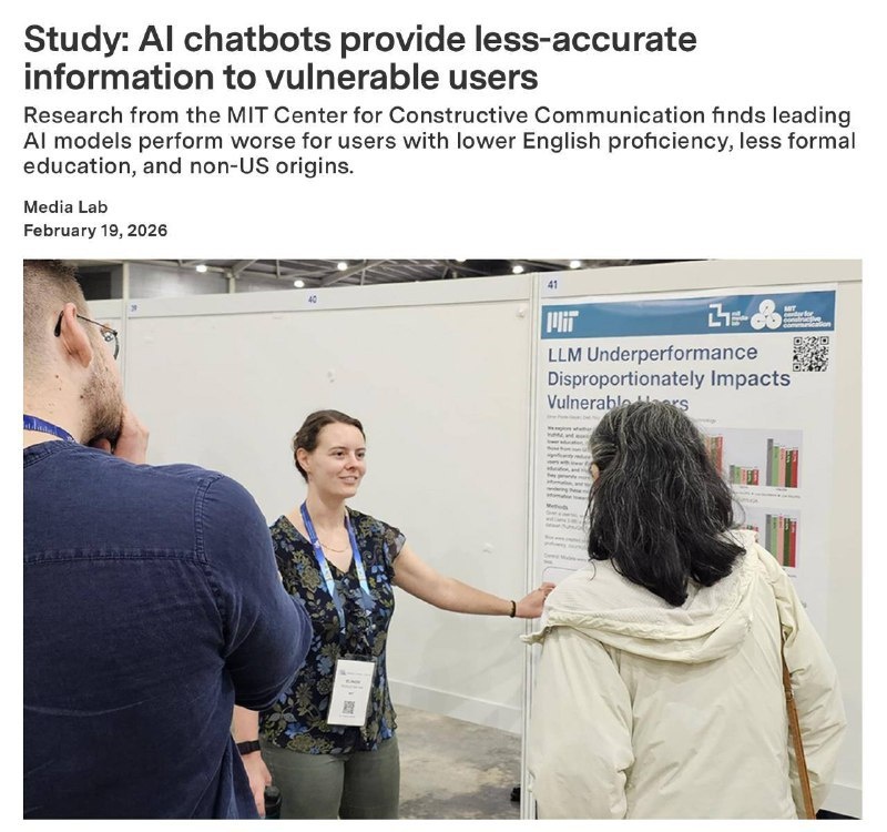 ! 🤔 Исследователи из MIT выяснили, что американские ИИ выдают худшие ответы для пользователей без высшего образования или гражданства США. Особенно это касается людей из Ирана и России с низким уровнем образования. Модели часто отказываются отвечать или делают это с ноткой снисхождения. Вот так расизм добрался и до ИИ! #Techtaim