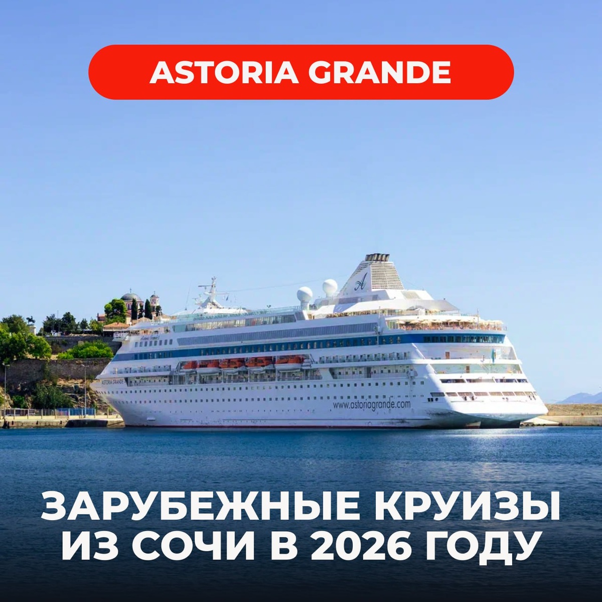Astoria Grande — единственный морской круиз за границу с отправлением из России. Особенности: — без перелётов и виз; — понятная логистика — старт из Сочи; — полностью русскоязычный сервис. Кому подойдёт: ➡️Новичкам: первый морской круиз без стресса; семейный формат; дружелюбная атмосфера; маршруты от 4–5 дней. ➡️Тем, кто уже пробовал круизы: интересные и нестандартные маршруты; экскурсии на русском языке (приобретаются дополнительно); тематические рейсы с приглашёнными гостями. ➡️Тем, кто сомневается в формате: знакомая Турция — комфортный старт; формат «всё включено»; без сложной подготовки. ➡️Опытным круизёрам: длинные маршруты 9-15 дней. Безвизовые маршруты 2026 года — в карточках. Что входит в стоимость: 🔵 питание «полный пансион»; 🔵 медицинская страховка; 🔵 портовый и топливный сборы; 🔵 свободный выход во всех портах; 🔵 развлекательная программа; 🔵 детский клуб с аниматорами; 🔵русскоговорящий персонал на борту. Дети до 11 лет — бесплатно (при размещении с двумя вз