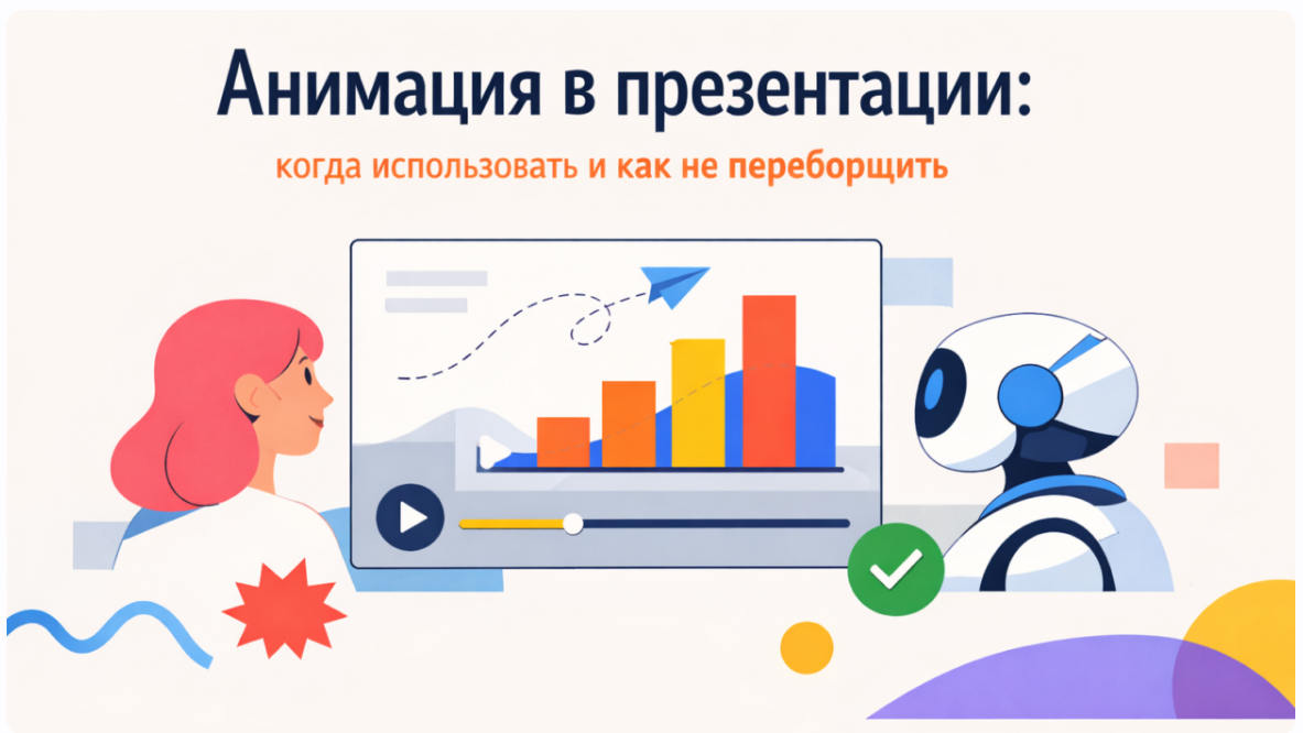 Открываешь презентацию коллеги — и текст вылетает со всех сторон, картинки вращаются, заголовки мигают. Через минуту уже не понимаешь, о чем речь. Знакомо? Анимация слайдов может как усилить твое выступление, так и полностью его убить. Главное — понять разницу между эффектом, который работает на смысл, и спецэффектами ради спецэффектов. Когда у меня было 20 минут на защиту проекта перед заказчиком, я решил не рисковать со сложной анимацией. Использовал Presentacium — сервис сгенерировал структуру с базовым оформлением, добавил пару простых переходов вручную. Результат: клиент сосредоточился на цифрах, а не на том, как красиво появляются блоки. Презентация сработала, потому что анимация была там, где нужно, — и не мешала воспринимать суть. В этом материале разберем, как сделать анимацию в презентации PowerPoint правильно: когда эффекты усиливают восприятие, какие настройки работают в деловом контексте, и почему в 90% случаев достаточно трех базовых приемов. Без воды про «творческий подход» — только конкретные техники, которые проверены на практике.