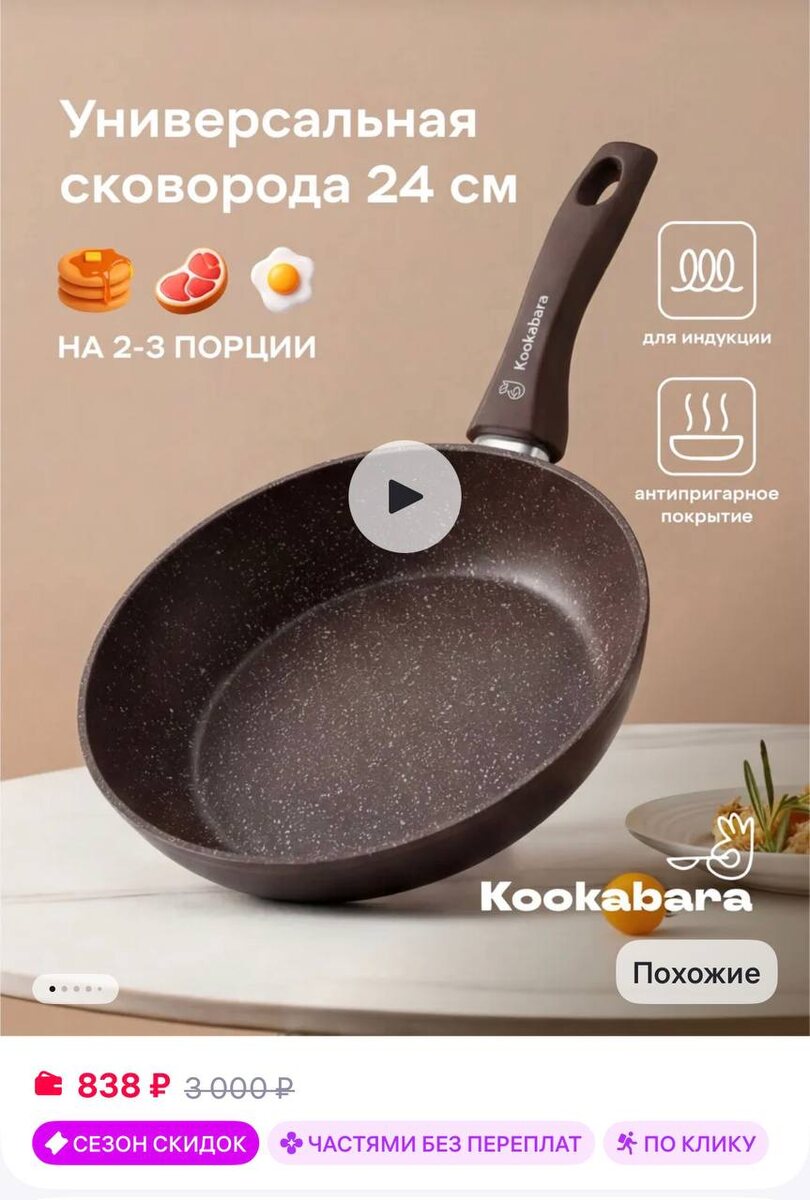 KOOKABARA Сковорода для индукционной плиты глубокая 24 см