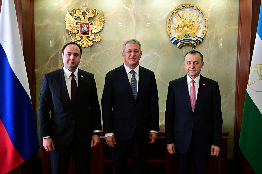 24 февраля в Уфе руководитель Башкортостана Радий Хабиров провел встречу с представительной делегацией из Таджикистана во главе с Чрезвычайным и Полномочным Послом этой страны в РФ Давлатшо Гулмахмадзодой. В переговорах также участвовал Генеральный консул Таджикистана в Уфе Фаридун Шараф Файзуллозода. Основные темы — расширение взаимодействия в сферах промышленности, экономики, образования и культуры. Радий Хабиров тепло приветствовал гостей, поздравил Фаридуна Шарафа Файзуллозоду с недавним вступлением в должность и пожелал ему удач. Руководитель республики отметил, что с 2011 года, когда в Уфе открылось Генеральное консульство Таджикистана, двусторонние отношения развиваются успешно и продуктивно. — Таджикистан для России — один из ключевых исторических союзников. Мы готовы к интенсивному партнерству во всех областях. Уже согласовали формирование межведомственной группы и план действий по сотрудничеству, — заявил Радий Хабиров. Давлатшо Гулмахмадзода подтвердил готовность Таджикистан