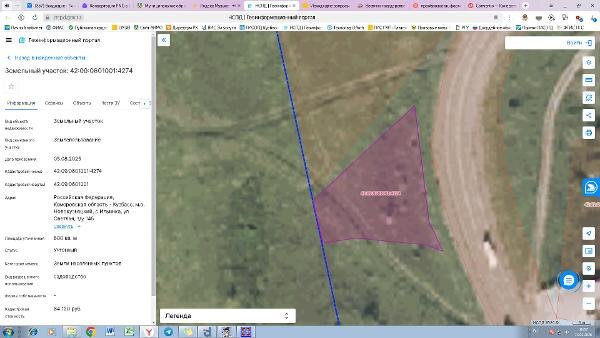 Название: Земельный участок с кадастровым номером 42:09:0601001:4274 площадью 800 кв