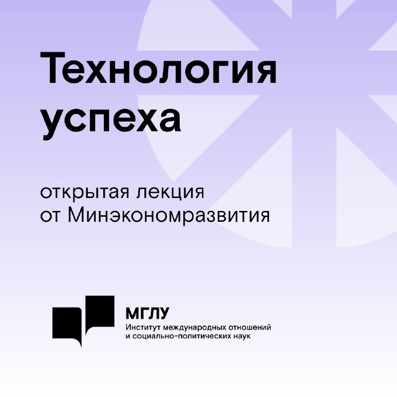 Технология успеха: открытая лекция от Минэкономразвития Технология успеха — проект Института международных отношений и социально-политических наук МГЛУ. Это открытые встречи с ключевыми экспертами и яркими представителями мира политики, экономики, науки и культуры. Это откровенный разговор об уникальном опыте достижения профессиональных и личных целей. Наши гости — сотрудники Минэкономразвития России: • Даниил Турланов, заместитель директора Департамента экономического сотрудничества со странами СНГ • Роман Шлыков, заместитель директора Департамента управления делами и кадровой политики. 🗓️ 25 февраля (ср) 14:30 📍 Остоженка, 36, ауд. 205 🔗 Регистрация на мероприятие МГЛУ в МАХ | ВК | Дзен