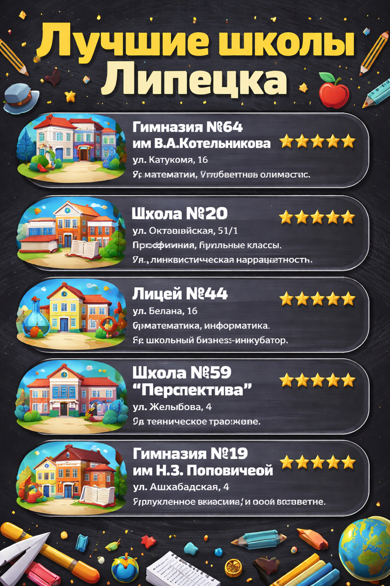 Выбор школы — это не просто учреждение, это 11 лет жизни вашего ребёнка. В Липецке полно учебных заведений, но далеко не все одинаково качественные. Разобрался, какие школы действительно готовят к вузам, а какие просто занимают место в расписании. Адрес: ул. Катукомия, 16