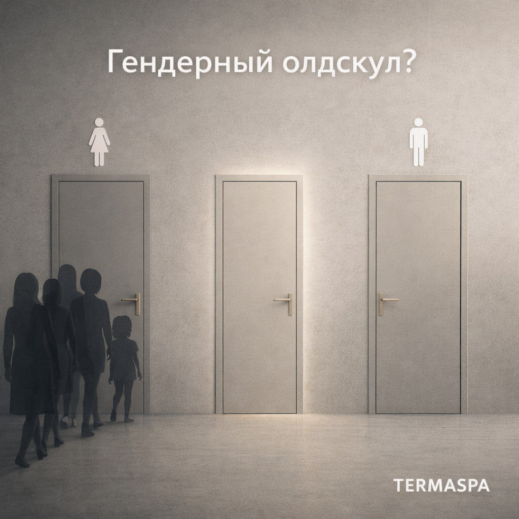 ? 👙🤡 При проектировании любого термального комплекса первый вопрос заказчика звучит как экзистенциальный выбор: «Какую раздевалку строим — общую или по старинке, гендерную?». Как правило, здесь приходится сражаться не с нормами, а с гранитной привычкой советского бассейна. 🏊♂️ В спорте всё просто: зашел отряд пловцов одного пола, скинул форму на лавке и строем пошел на дорожку. Но в термах эта логика «единиц учета» превращается в операционный кошмар и этический триллер. 😱 Давайте препарируем реальность: решение о походе в аквапарк или термы в 95% случаев принимает женщина. Она — двигатель вашего трафика, главный бухгалтер семейного досуга. 📑 И именно она тащит за собой весь «табор»: мужа, детей, подруг, бабушек и ворох полотенец. В такой формуле женщин в комплексе автоматически получается в два раза больше, чем мужчин. 📈 В традиционной гендерной схеме это неизбежно приводит к тому, что в мужской раздевалке гуляет эхо, пока в женской разворачивается штурм Бастилии. 🏰 Там плав