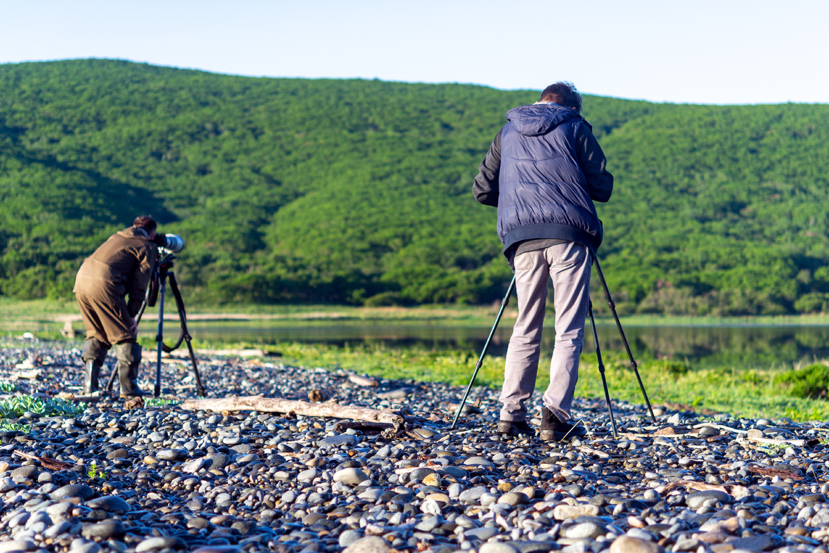 А вот для перелётных птиц сейчас был несезон, но во время массовых весенней и осенней миграций Благодатное становится перевалочной базой для огромного количества пернатых, не говоря о тех, для кого оно и всегда служит домом и местом гнездования. Проводя постоянный мониторинг, заповедник фиксирует на озере в разные времена года присутствие многих-многих десятков видов, среди которых различные утки, гуси, цапли, лебеди, бакланы, поганки, орланы... Для работы по наблюдению за всей этой братией на берегу построено несколько специальных вышек.