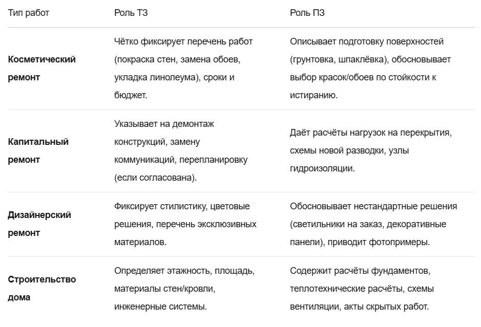 Разберу, как применяются техническое задание (ТЗ) и пояснительная записка (ПЗ) в строительстве и ремонте квартир — с конкретными примерами и особенностями. Назначение: Когда составляется: