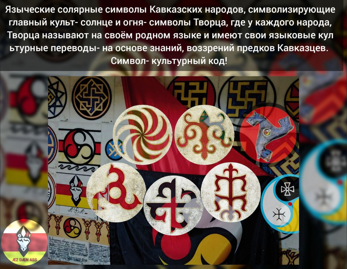 Языческие солярные символы Кавказских народов, символизирующие главный культ- солнце и огня- символы Творца, где у каждого народа, Творца