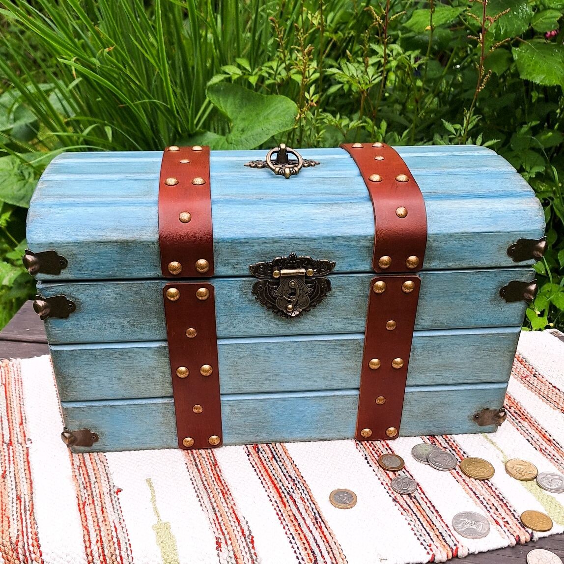 ! 🏴☠️✨ «Богат не тот, у кого полон сундук, а тот, кто знает цену тому, что внутри».🌪⚓️ Погрузитесь в мир волшебных приключений! Этот #сундук станет идеальным компаньоном для вашего маленького пирата и подарит незабываемые игровые моменты, наполненные волшебством и фантазией. 🦜🧭 Чем он покорит сердце юного капитана: 🔹 Дух океана: Свежий голубой цвет пропитан морским бризом, а ремни из натуральной #кожа и античная фурнитура придают ему налет стильной брутальности. 🌊⛓️ 🔹 Безопасность и экологичность: Это настоящая #ручнаяработа. Сундук выполнен из дерева и обработан качественными материалами на водной основе без посторонних запахов. Идеален для детей от 5 до 15 лет. 🪵👶 🔹 Хранитель секретов: Сундук запирается на защелку. Если оснастить его навесным замочком с ключом, ребёнок будет в восторге от возможности самостоятельно прятать свои «драгоценности»! 🗝 (Навесной замочек в цену не входит). Каждый наш сундук изготовлен вручную, обладает своим уникальным характером и неповтори