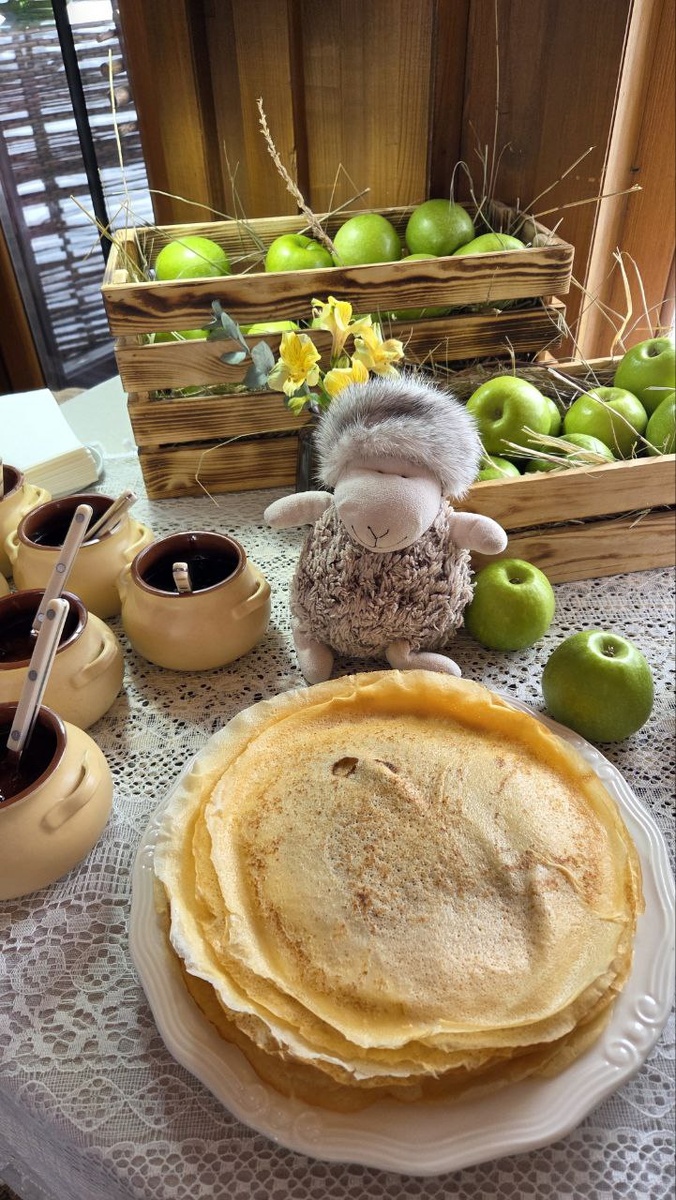 ☺️ Через пару-тройку часов после прекрасного завтрака, благодаря проактивному стаффу Forest Hills Golf Resort by Moss, были накрыты праздничные столы с угощениями. На улице появились олени, и каким-то чудом мгновенно возведено чучело для праздничного сжигания. Чудеса!❤️ После целой недели блинных дегустаций случился последний рывок. Подогнув копытца, Овца Борис за обе щёки уплетал блинчики с черничным вареньем, абрикосовый тарт, пирожки, пряники, баранки. Ну вы поняли… Как в последний раз 😂 А какой отличный глинтвейн!? Просто сказка💥 В итоге, на оленях накатались, песен наорались, потанцевали под частушки, и в целом, отлично провели выходной на свежем воздухе! Зимнее чучело в духе Миядзаки феерично сожгли 🔥🔥🔥 Теперь будем весну ждать 🌴💚🐛 #foresthills