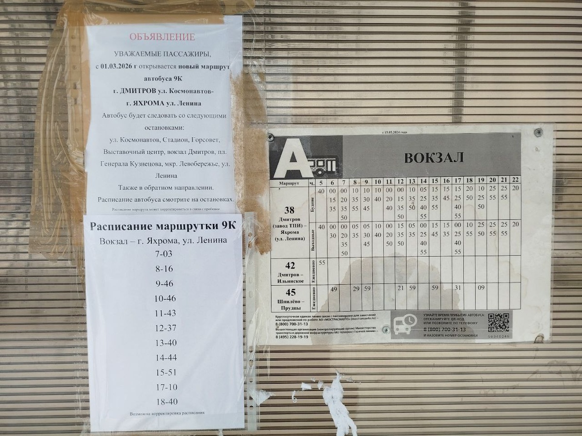 На остановке "Вокзал" в Дмитрове появилось новое расписание автобуса ( или маршрутки) 9К.