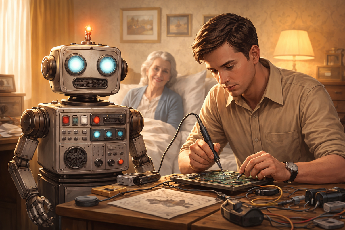 Гришин выбрал третий путь — инженерный. Если нельзя быть рядом постоянно, значит, рядом должно быть что-то, что возьмёт на себя часть задач. Не сиделка — сиделок не хватало. Не соседка — нельзя перекладывать такую ответственность на чужих людей бесконечно. Машина. Умная машина.
