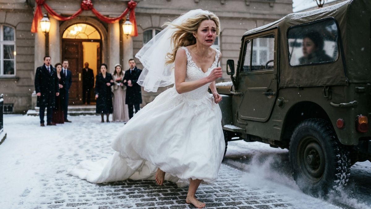 Саша, не помня себя, в чём была — в белом платье и на каблуках, — выскочила за ним на улицу. Мороз обжёг лицо и плечи. Коля уже садился в подъехавшую военную машину.